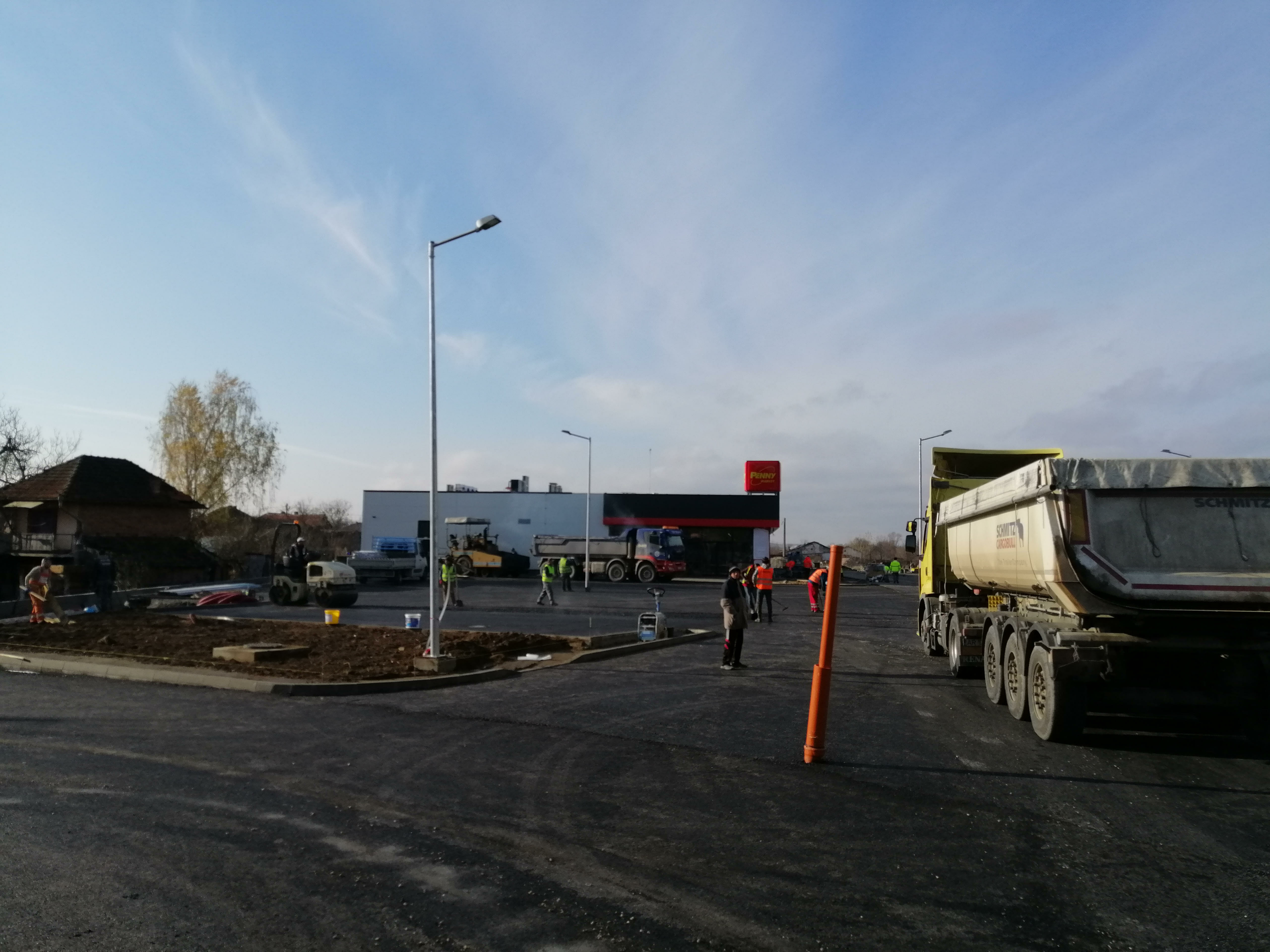 Alături de partenerul principal ACTIVO CONTRUCT VEST SRL, firmele specializate în contrucțiile de drumuri, parcări, șanțuri și podețe, pavaje și alte lucrări de construcții – INTERMED UTILAJ și COMPANY AGREGAT, asfaltează și modernizează drumul de acces și parcările adiacente pentru magazinul PENNY din orașul Sebiș, care va fi inaugurat în cursul acestei săptămâni.