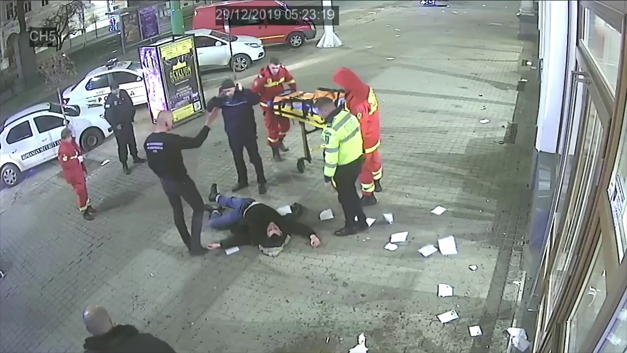 În continuare, victima, mai mulți agenți de pază și un client al localului l-au urmărit pe agresor, l-au ajuns din urmă, l-au imobilizat, i-au aplicat mai multe lovituri și au apelat Serviciul de urgență 112.