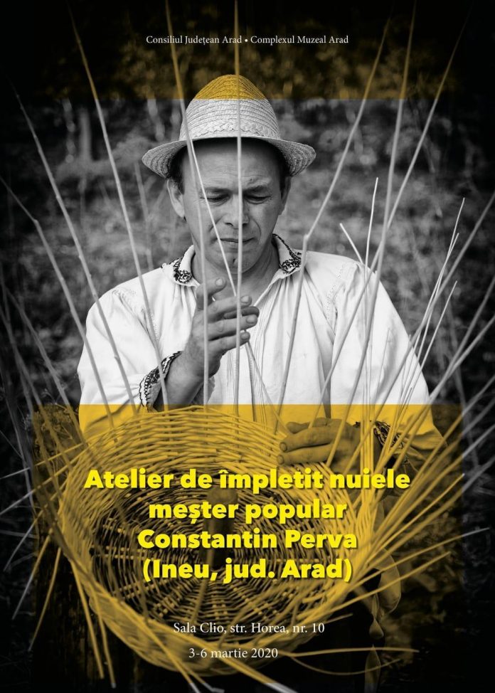 În cadrul evenimentului am pregătit ateliere demonstrative, pe parcursul cărora copiii vor deveni ucenici timp de oră și vor descoperi tainele meșteșugului împletitului de nuiele, alături de meșterul popular Constantin Perva. Atelierele se desfășoară până vineri, 6 martie, între orele 09.00-15.00, din oră în oră pentru fiecare grup de preșcolari sau elevi. Școli participante: Colegiul Naţional “Moise Nicoară” Arad Școala Gimnazială ”Iosif Moldovan” Arad Colegiul de Arte ”Sabin Drăgoi” Arad Colegiul Particular ”Vasile Goldiș” Arad Colegiul Național ”Vasile Goldiș” Arad Colegiul Tehnic de Construcții și Protecția Mediului Arad