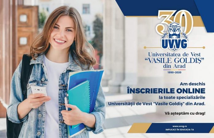 Universitatea de Vest „Vasile Goldiş” din Arad a deschis Centrul Permanent de Înscriere şi Informaţii pentru admiterea în anul universitar 2020-2021 (B-dul Revoluţiei nr. 94-96, Telefon: +40748988884  +40257217029, e-mail: admitere@uvvg.ro; site:www.uvvg.ro), unde viitorii studenți pot obține informații și se pot înscrie ONLINE la una, sau mai multe specializări din cadrul celor șase facultăţi: Facultatea de Medicină, Facultatea de Medicină Dentară, Facultatea de Farmacie, Facultatea de Ştiinţe Socio-Umane, Educaţie Fizică şi Sport, Facultatea de Ştiinţe Economice, Informatică şi Inginerie, Facultatea de Ştiinţe Juridice.