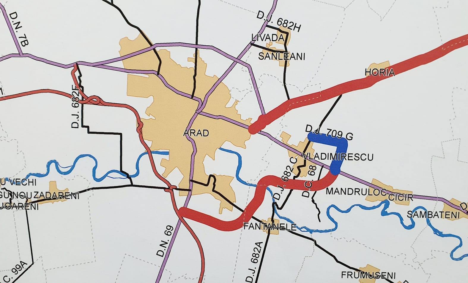 Proiectul „Varianta ocolitoare a Municipiului Arad – Est” presupune proiectarea şi realizarea unui tronson de drum pornind din DN 69 Arad-Timișoara km 46+115 (din sensul giratoriu existent unde DN 69 intersectează breteaua nordică a autostrăzii A1 – nodul rutier Arad Sud) având punctul de racord cu DN 7 Nădlac-Arad-Deva la intersecția acestuia cu DJ 709G (Horia-Vladimirescu).