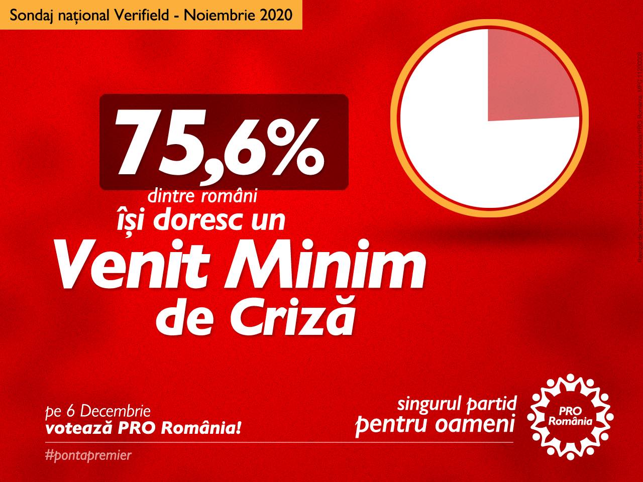 „Trecem împreună prin criză, nu lăsăm pe nimeni în urmă. Scoatem ţara din criză cum am făcut şi în 2012! Eu sunt PRO România! Pe 6 Decembrie fiţi şi voi PRO România!”, a declarat Victor Ponta. Datele Sondajului naţional Verifield ne confirmă necesitatea acestei forme de sprijin, aleasă de peste 75% dintre respondenţi. PRO România îl va pune în aplicare de la 1 ianuarie 2021!
