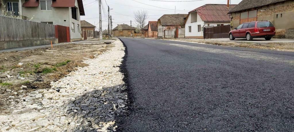 Stratul de asfalt a fost finalizat, zilele trecute, și pe strada 102 și au continuat pe strada 106, unde au fost finalizate podețele de acces în gospodării.