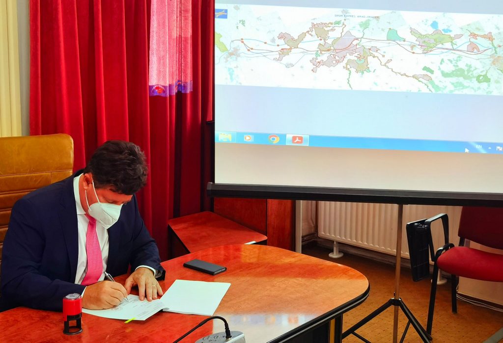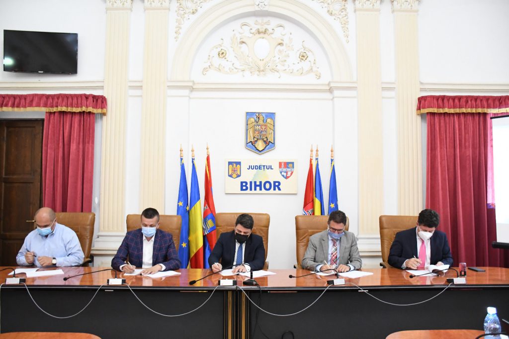 Iustin Cionca, președintele Consiliului Județean Arad, a efectuat astăzi o deplasare la Consiliul Județean Bihor unde, alături de președintele Ilie Bolojan și de primarii din Arad și Oradea, a semnat contractul de execuție a lucrărilor de proiectare pentru drumul expres Arad-Oradea.