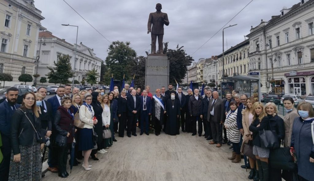 O astfel de zi de sărbătoare academică nu putea începe fără cinstirea patronului spiritual al Universităţii, Marele Corifeu Vasile Goldiş, precum şi a Rectorului Fondator Prof. univ. dr. Aurel Ardelean.