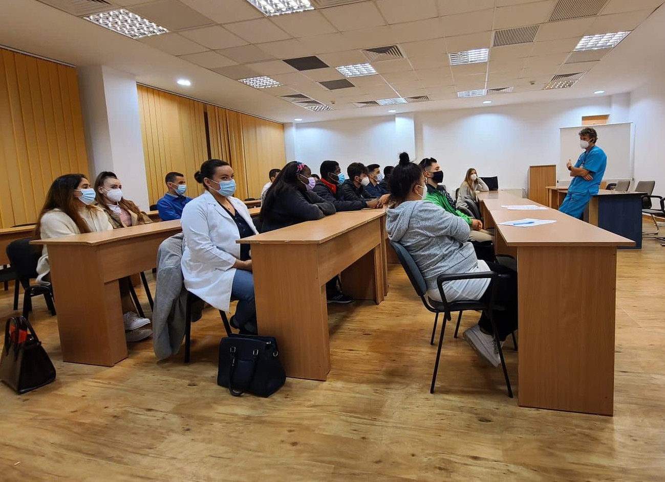 Recent, 56 de studenţi de la Facultatea de Medicină Generală UVVG s-au întâlnit cu dr. Radu Jipa, medicul-şef al UPU Arad, pentru a pune la punct mecanismul de aplicare a măsurilor ce se impun în Unitatea de Primire Urgenţe, în contextul valului 4 de COVID-19. Vaccinaţi şi împărţiţi în două grupe, cu un program de şase ore pe zi (schimbul I de la 10 la 16 şi schimbul II, de la 16 la 22), studenţii medicinişti de la UVVG dau o reală mână de ajutor cadrelor medicale de la UPU, mult încercate în aceste zile de explozia de cazuri de coronavirus.