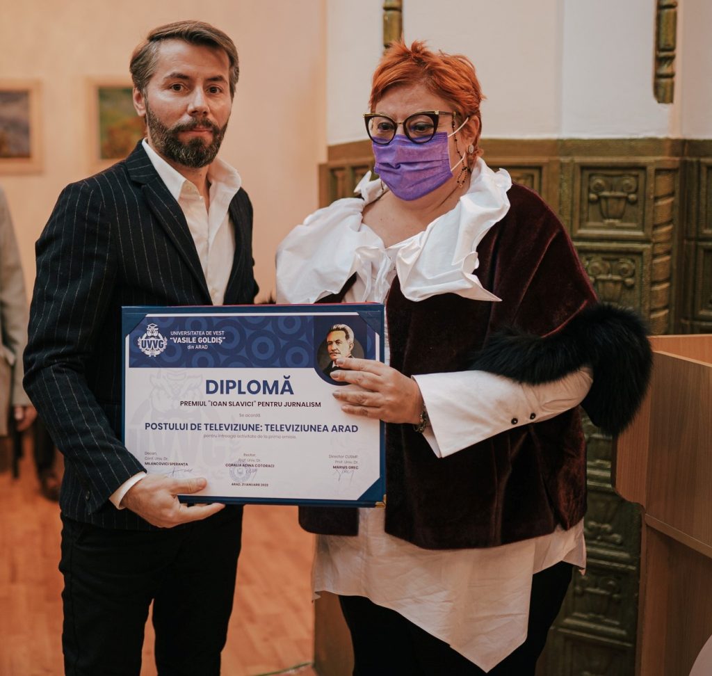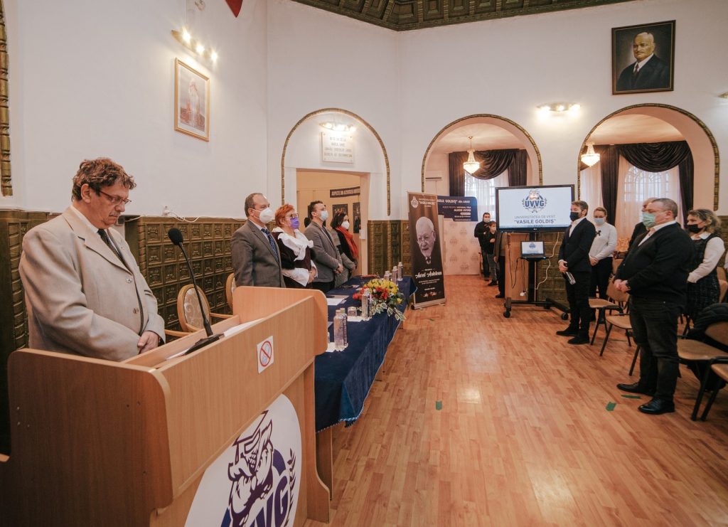 Atmosferă de sărbătoare în Aula „Ştefan Cicio-Pop”, unde Universitatea de Vest „Vasile Goldiş” din Arad a acordat premiile anuale „Ioan Slavici” şi „Mihai Eminescu”. Premii instituite la iniţiativa Rectorului fondator, regretatul profesor Aurel Ardelean, pentru a susţine excelența în cultură. Premiile sunt cu atât mai valoroase cu cât personalitățile care le-au acceptat de-a lungul vremii reprezintă sau au reprezentat vârfuri recunoscute nu numai în plan național, dar și în plan internaţional. Să amintim numele academicianului Eugen Simion – fost președinte al Academiei Române – căruia i s-a decernat Premiul „Mihai Eminescu”, pentru remarcabila reușită de a publica integral opera marelui Om de cultură, sau Baruțu T. Arghezi, care a primit Premiul „Ioan Slavici”, pentru întreaga activitate literară personală, dar și cea de punere în valoare a operei ilustrului său tată, Tudor Arghezi.