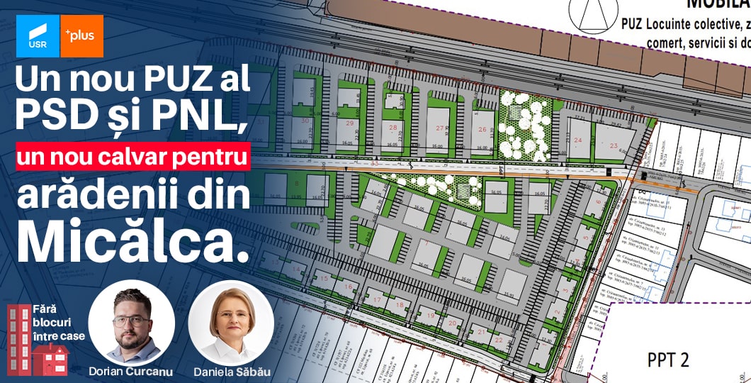 USR Arad, alături de arădeni, se va opune cu toate puterile unor astfel de practici. Susținem și promovăm scrisoarea deschisă lansată de locuitorii din Micălaca. Vom continua campania „Fără Blocuri Între Case” atâta timp cât administrația PSD&PNL va continua propria lor campanie, “Nici o casă fără blocul ei!”, spun cei de la USR Arad.