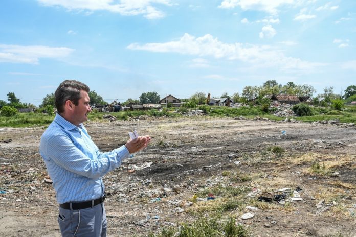 Nu mai puțin de 58 de construcții ilegale din zona străzii Mărului au fost demolate în ultimul an. Totul a început odată cu demararea lucrărilor de amenajare a uneia dintre cele mai generoase (atât ca întindere, cât și ca dotări) zone de agrement din municipiu, situată în proximitatea Pădurii Ceala. Primăria Municipiului Arad nu se oprește aici. Până în vara acestui an, alte 24 de construcții ilegale vor fi puse la pământ, după ce familiile care le ocupă vor fi evacuate. “Ce avem în prezent aici este rezultatul unei pasivități de peste 30 de ani a administrațiilor arădene. Este o realitate pe care nu o putem tolera. Vom merge în continuare cu demolările. Primăria a acordat 31 de locuințe celor care s-au încadrat în prevederile legale. Nu același lucru putem spune despre cei care încă mai locuiesc acolo. Îi vom soma să evacueze zona. Unde va fi nevoie de o soluție pentru minori, vom apela la DGASPC.”, a declarat primarul Călin Bibarț în cadrul conferinței de presă organizată în zona străzii Sabinelor. Primăria Municipiului Arad are în vedere amenjarea tot a unei zone de agrement pe toată intinderea rezultată în urma demolărilor din zona străzii Mărului. Pentru început terenul va fi igienizat, iar apoi vor fi identificate surse de finanțare. “Este un teren al Primăriei foarte bine poziționat. Ne gândim tot la o investiție pe fonduri europene. În partea stângă a străzii Mărului vom face o evaluare a tot ce înseamnă proprietăți. Construcțiile ilegale vor fi demolate, iar dacă va fi cazul vom recurge la exproprieri, astfel încât toată zona să fie asanată și pregătită pentru zonă de agrement.”, a mai precizat edilul Călin Bibarț.