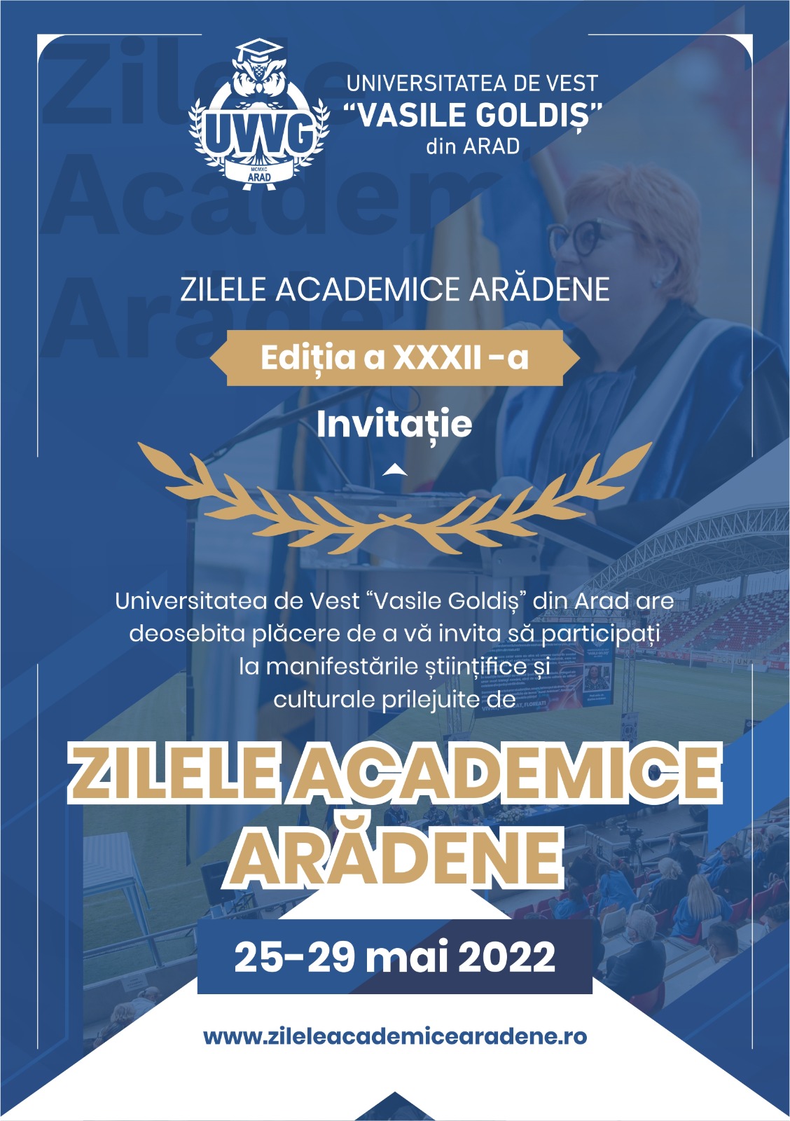 Cetate a ştiinţei şi culturii arădene, transilvane şi euro-regionale, integrată în spaţiul european al cercetării şi educaţiei, afiliată la organizaţii internaţionale, Universitatea de Vest „Vasile Goldiş” din Arad marchează şi în acest an Zilele Academice Arădene, ale căror baze au fost puse în urmă cu 32 de ani de regretatul rector-fondator, prof. univ. dr. Aurel Ardelean. Şi în acest an, Zilele Academice Arădene, programate în perioada 25-29 mai, vor avea parte de invitaţi speciali şi o tematică de real interes, conducerea Universităţii de Vest „Vasile Goldiş” din Arad, în special prin rectorul instituţiei, prof. univ. dr. Coralia Adina Cotoraci, acordănd o atenţie deosebită procesului de internaţionalizare a Universităţii.