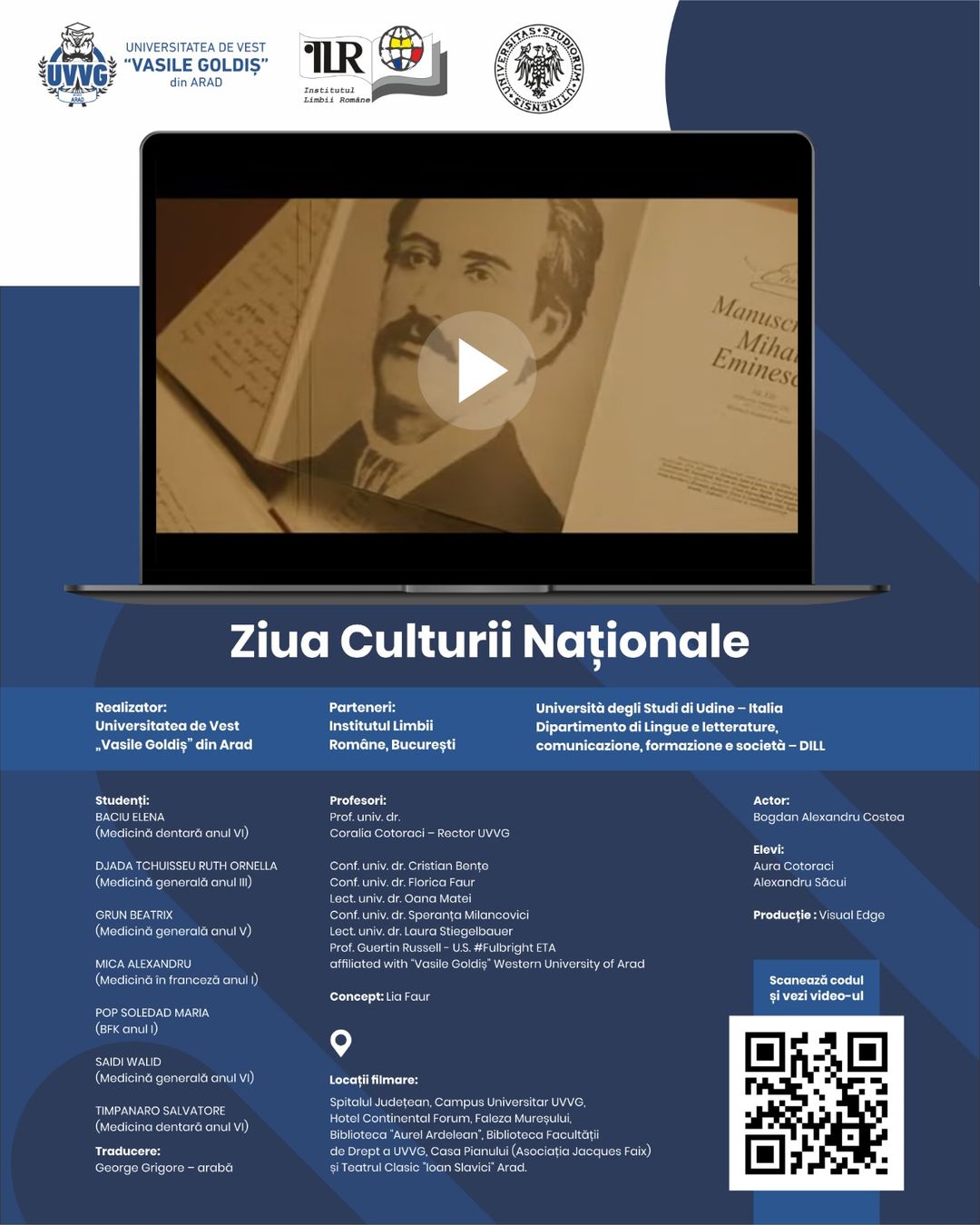 „Alături de Institutul Limbii Române si Universitatea din Udine – DILL (Italia), prin studenții și profesorii universității susținem cultura, ca liant ce fascinează, transformă și ne apropie, în internaționalizarea valorilor naționale”, precizează reprezentanții UVVG Arad.