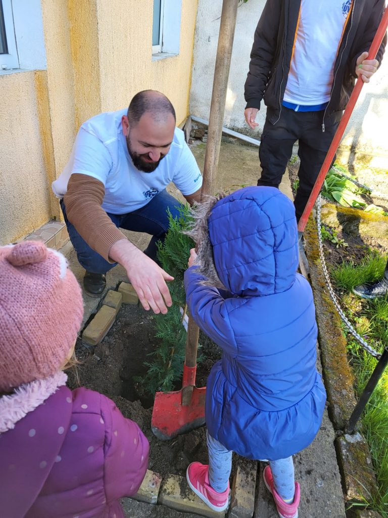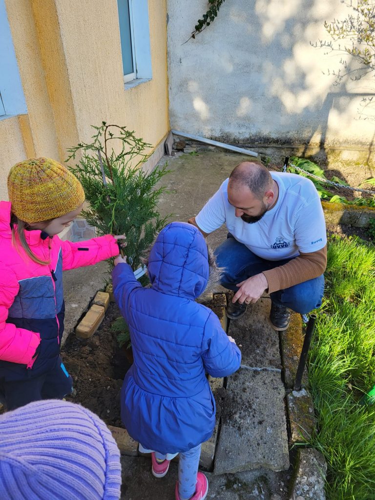 Copiii au fost încântați de această activitate, fiecare având ocazia să participe la acțiunea propriu-zisă de plantare a arbuștilor ornamentali.