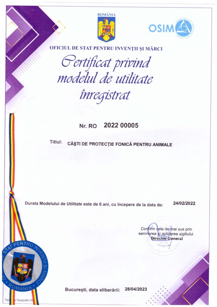 “Am creat un dispozitiv într-o căciuliță, care are niște cupe laterale pe urechi, în funcție de dimensiunea capului, taliei, a vârstei animalului”, a subliniat Cosmin Ișfa.