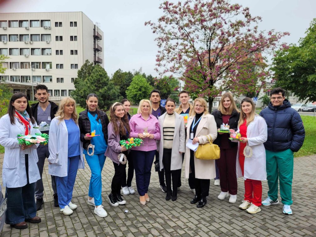 Sute de pacienți și cadre medicale din cadrul Spitalului Clinic Județean de Urgență Arad au avut, în ultimele două dimineți, cel puțin un motiv de a zâmbi. Studenții români și străini ai Facultății de Medicină din cadrul Universității de Vest „Vasile Goldiș” din Arad le-au oferit acestora obiecte artizanale, realizate de 1600 de copii de la grădinițele din municipiu.